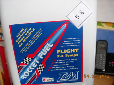 Carburant: 75% de Méthanol 20% d'huile de ricin et 5% de Nitrométhane,