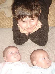 Notre grand frère nous fait plein de bisous et commence déjà à essayer de nous faire parler. D'après lui, nous y arrivons presque!
