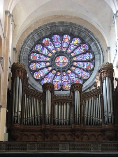 Une vue interieure avec le vitrail exceptionnel (côté Place de l'Eveché) et les grandes orgues
