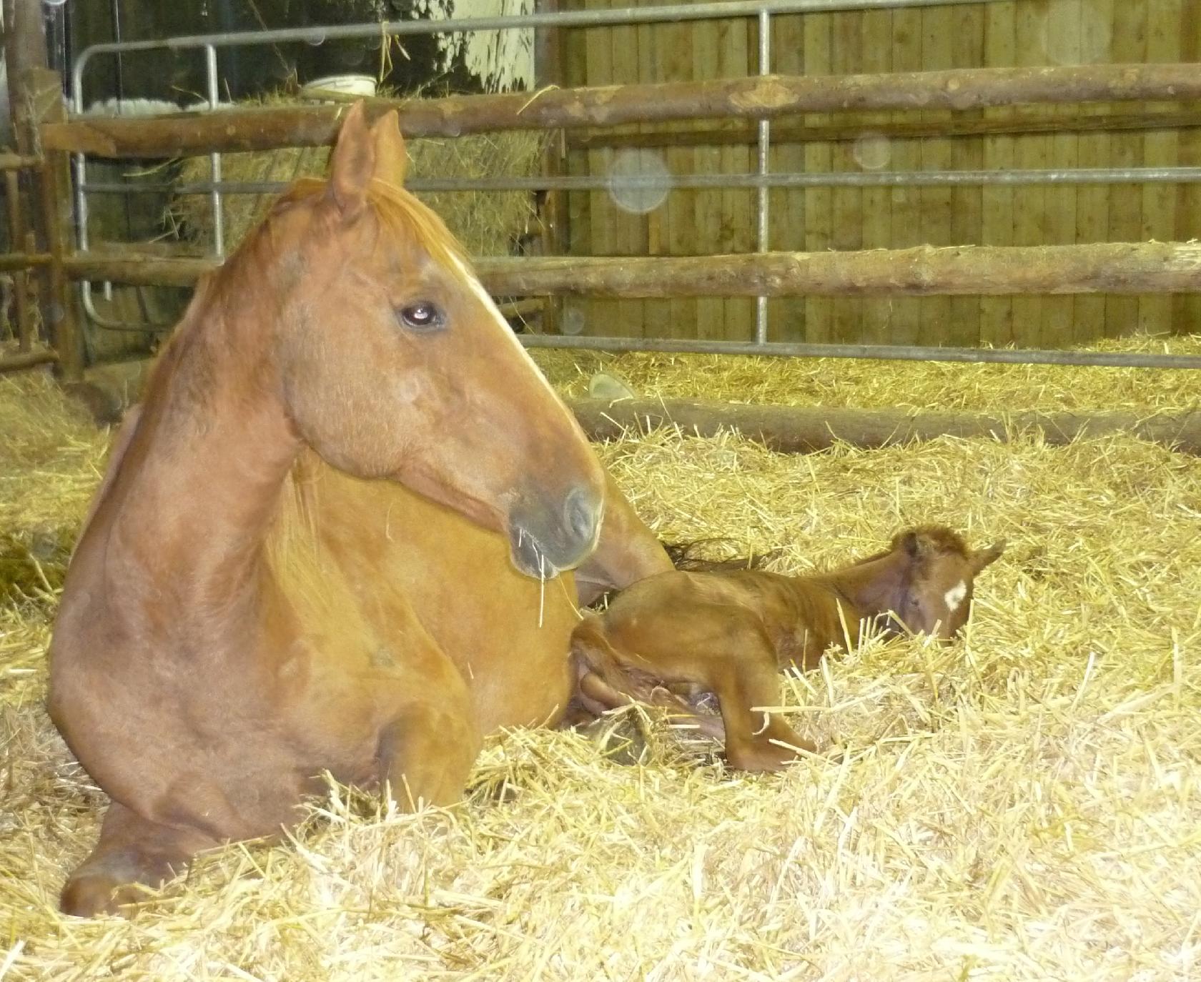 Ouff ! après plusieurs nuits de surveillance, notre "Lolotte" a finalement décider de pouliner cette après midi à 18h20 ....