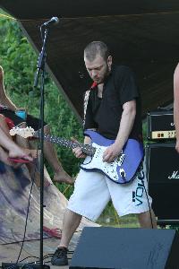 Bref, j'ai rejoint Greg, le batteur qui habite pas loin de chez moi, ils avaient organisé un we camping au bord d'une rivière, au programme, partie de foot avec une bière à la main, cricket avec une bière à la main, et en début de soirée les concerts commencent, cinq groupes sont là, pour se faire plaisir ainsi qu'à tous leurs potes, une bande d'environ 60...