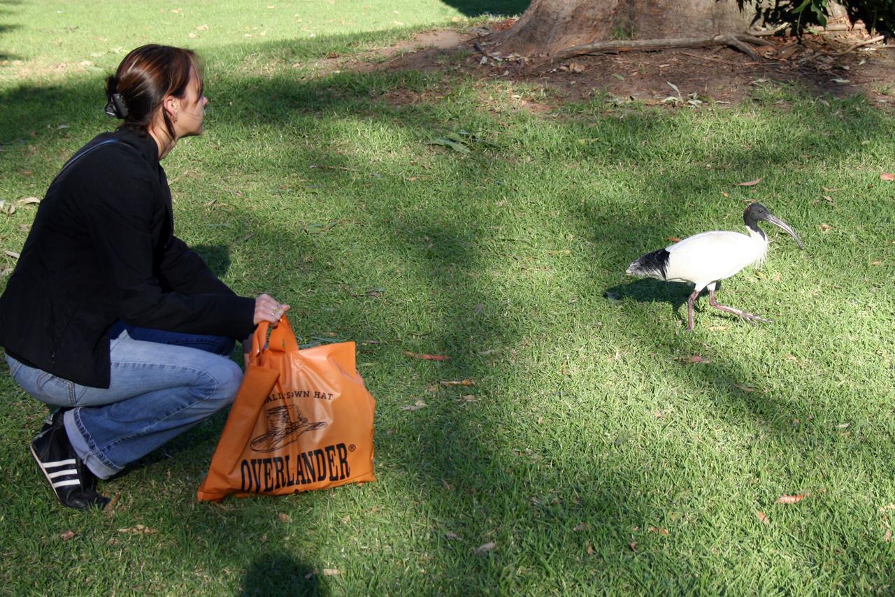 Isa essaye d'imiter le white ibis pour s'en approcher... le zozio a bien senti l'entourloupe