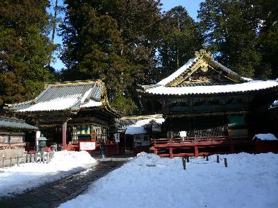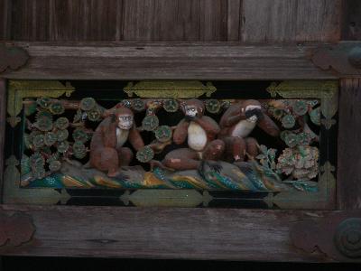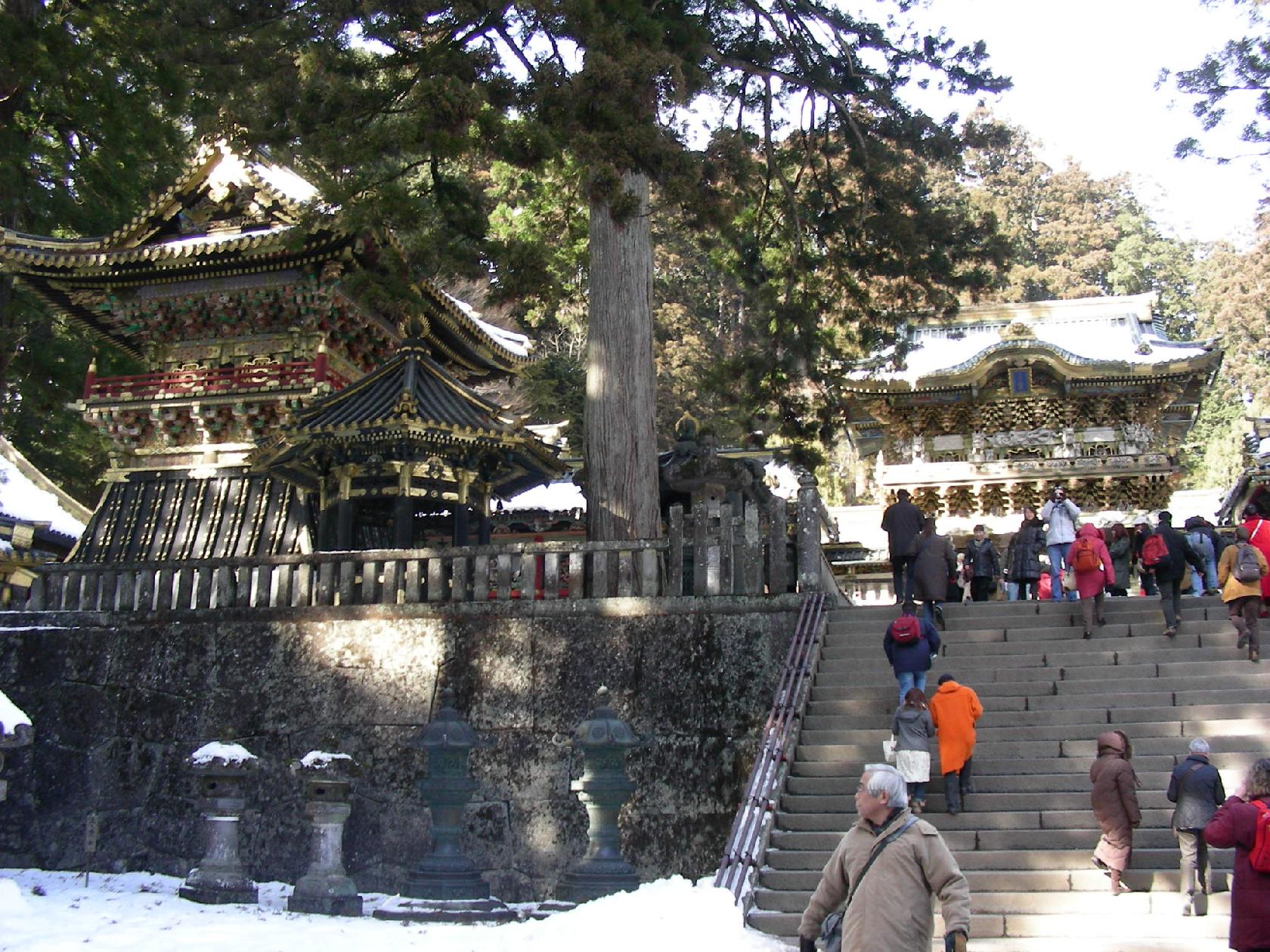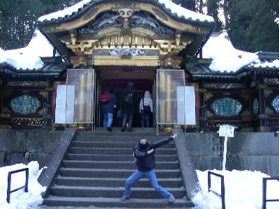 Arrivés à Nikko le froid vif nous engourdit les membres, mais bien vite nous commençons l'ascension vers Nikko. Sur le lieu de visite, nous optons pour aller déjeuner en premier et faire la visite tranquillement par la suite. Nous nous dirigeons alors vers un petit troquet plus bas, et là grande joie nous allons enfin pouvoir goûter aux "vrais" ramen !!! Immédiatement nos yeux se portent sur ce plat présent dans la vitrine. Nous entrons dans le restaurant, et tout de suite nous acceptons de manger sur les tatamis, cette journée était décidément riche en émotion... La visite de Nikko termina de nous émerveiller avec ces temples colorés, cette opulence dans l'architecture, qui nous réchauffait le coeur malgré le froid. C'est sur une façade d'un des temples que se trouve la fameuse trinité simiesque avec ses trois singes (je n'entends rien, je ne dis rien, je ne vois rien). Malgré le nombre impressionnant de marches à monter, chaque temple nous apporte sa récompense. Epuisés mais comblés, nous avons repris le train direction Tokyo pour une nuit de sommeil bien méritée...