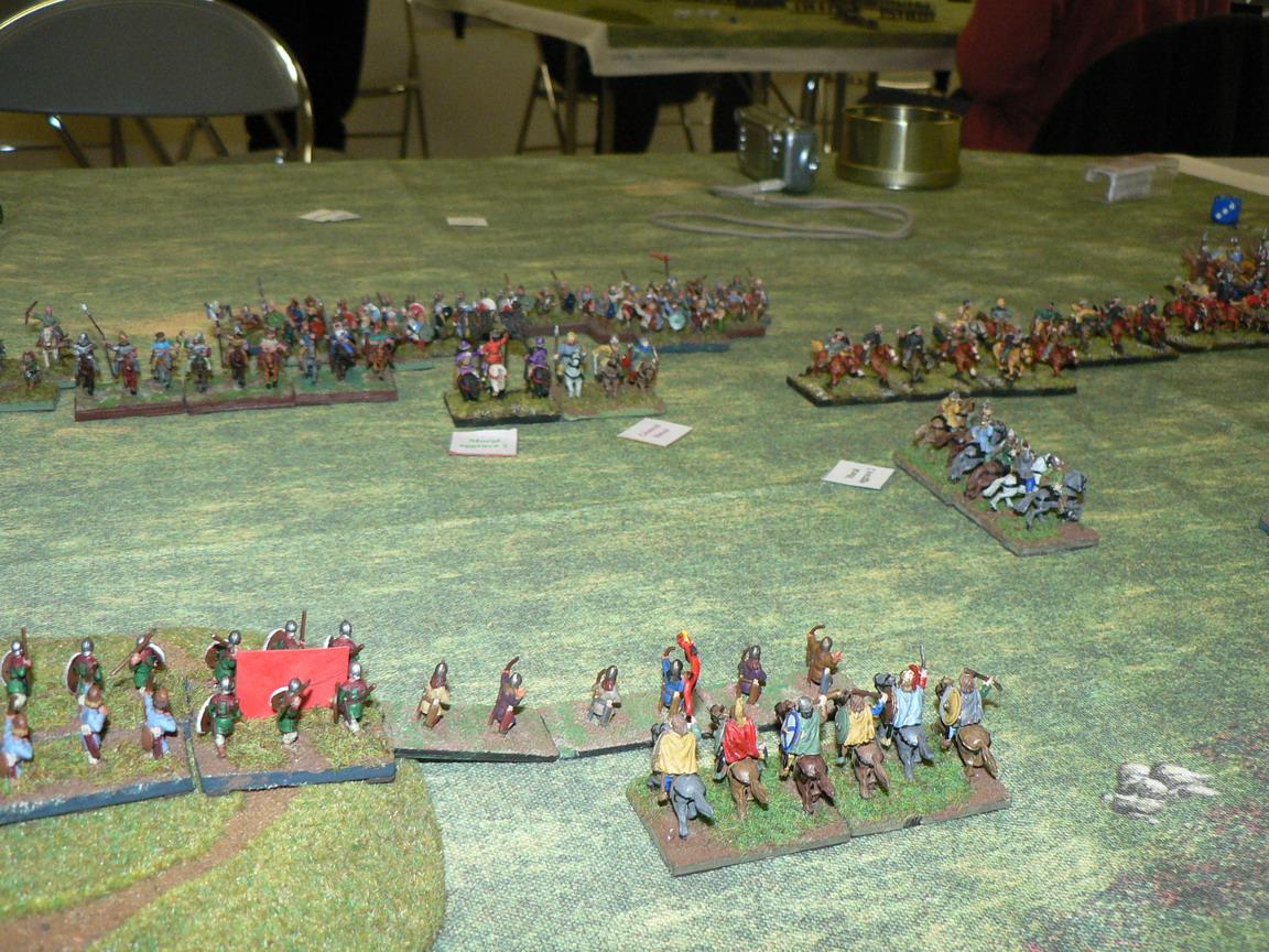 Ce samedi, Yann, un nouveau membre de la petite section historique de notre club (Les Hussards d'Isengard à Bruz pour ceux qui ne suivent pas!), venait faire une partie de DSC (De Sumer à Constantinople, règle française de jeu de figurines historiques, pour ceux qui suivent encore moins! ) et comme il découvre la règle, qu'il a commencé à peindre une armée de Huns, nous avions prévu une rencontre entre une armée romaine orientale bas empire et une l'armée d'Attila (Le Hun, pas le Hein!).