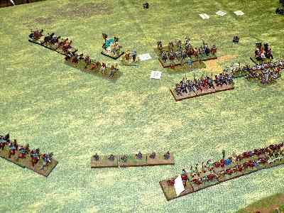 Les Equites romain, équipés de l'arc et la lance s'avance pour contrecarrer l'avance de la cavalerie légère adverse, il reculeront sous la densité des tirs.
