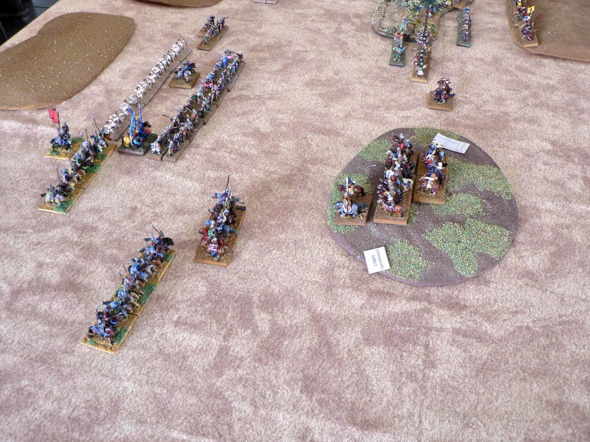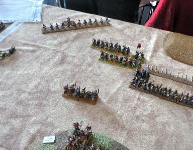 Les différentes valses des avances et reculs des cavaleries légères en fonction des charges avec esquive et des résultats des tirs. De ce côté, Bruno a peu de chance aux jets de commandements et n'arrive pas à faire avancer ou très peu ses unités de cavalerie et moi je suis en infériorité numérique, alors je temporise.