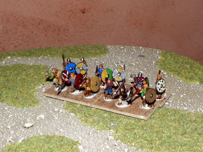 Une horde de Saxons, qui contrairement à celle du post précédent est cette fois-ci moyenne et non lourde (trois figurines par socle au lieu de quatre sur un socle de 4cm par 2 au lieu de 1.5cm de large).
