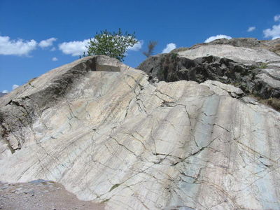 Lorsqu'on s'approche, on comprend pourquoi certains blocs sont restés en place. Celui là, de 9 m de haut, est estimé à 360 tonnes