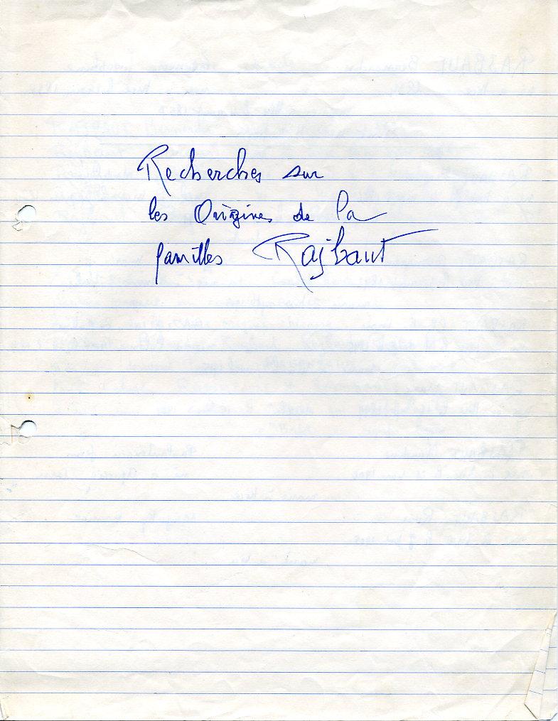 Effectivement je ne suis pas le premier à avoir cherché à connaître ses origines familiales. Mon grand père paternel (encore lui !) avait le premier fait quelques recherches consignées dans un document que j'ai retrouvé dans ses papiers après son décès et que j'ai conservés.