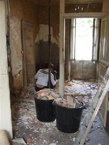 Début de la journée du 8 Mai, nous sommes 5 pour démolir et on va plus vite que prévu :