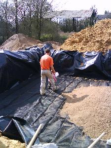 On pose un tulle de protection (pour empecher le sable de se melanger au gravier)