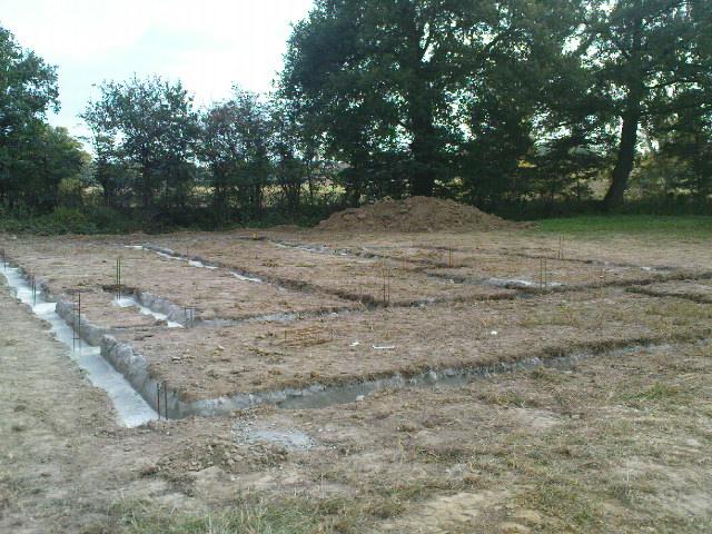 Aprés avoir creusé, le maçon a coulé les fondations, terme qui veut juste dire qu'il a mis plein de béton dans les fosses creusées par la pelle!!