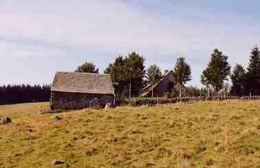 L'Aubrac, on le découvre dans le département de la Lozère et dans l'Aveyron. J'aime ces immenses espaces arides, sans grande végétation, très rudes, avec des hivers au froid terrible, et des étés torrides ! C'est une région d'élevage, avec des troupeaux de moutons, et surtout des fameuses vaches "Aubrac". Les fêtes de la transhumance de Laïssac et de Nasbinal sont des rassemblements hauts en couleur !!! Bâti au milieu du pacage, le buron est une sorte de cabane de berger dans laquelle est encore fabriquée la fameuse fourme de Laguiole avec laquelle on fabrique le célèbre aligot. Le buron est construit en basalte et granit, percé d'une seule ouverture, il est posé sur un terrain en pente, à proximité des points d'eau.