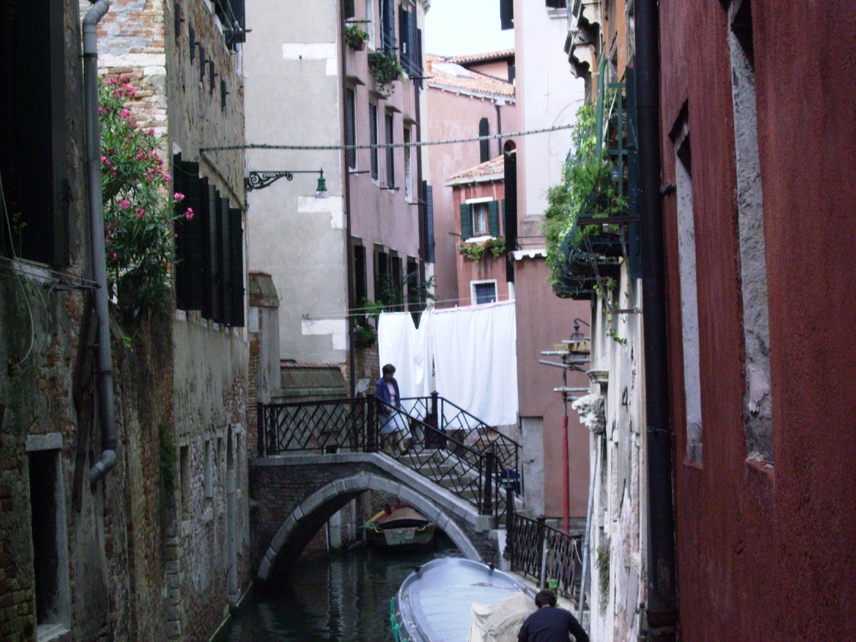Draps de lit en travers du canal, très typique de l'Italie ...