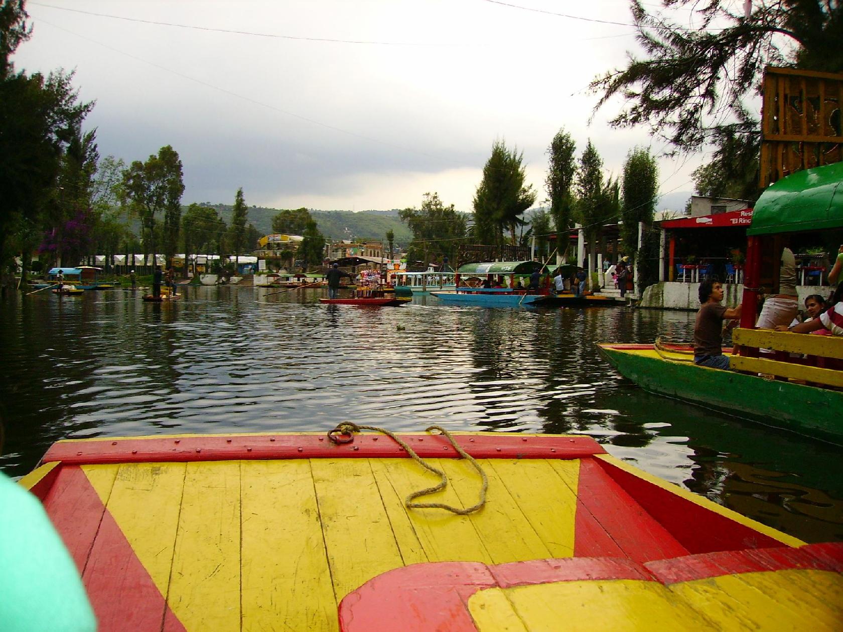 En Náhuatl, ça signifie "Lieu où poussent les fleurs". Situé dans le grand Mexico, sa partie terrestre est un petit patelin colonial sans grand charme. L'intérêt de Xochimilco réside dans son statut de témoignage vivant du site tel qu'il était avant l'arrivée des 'spagnols. Car, si vous ne le saviez pas, Tenochtitlan (= Mexico, avant la conquête 'spingouine) était construite sur une île, au milieu d'un lac gigantesque. Pour communiquer, les différentes villes alentour usaient de routes maritimes, avec des canaux, tout le merdier. Et une partie de Xochimilco se situe encore sur l'eau. On l'appelle d'ailleurs la Venise mexicaine (faut que je fasse gaffe à ce "on" qui s'inscruste de partout...). On (tiens, tu vois) se balade sur des canaux charmants, sans grande circulation, si ce n'est quelques barques occupées par la jeunesse dorée de Mexico ou des groupes de touristes canadiens ou 'ricains, en short, chaussettes jusqu'aux genoux et coups de soleil de rigueur!