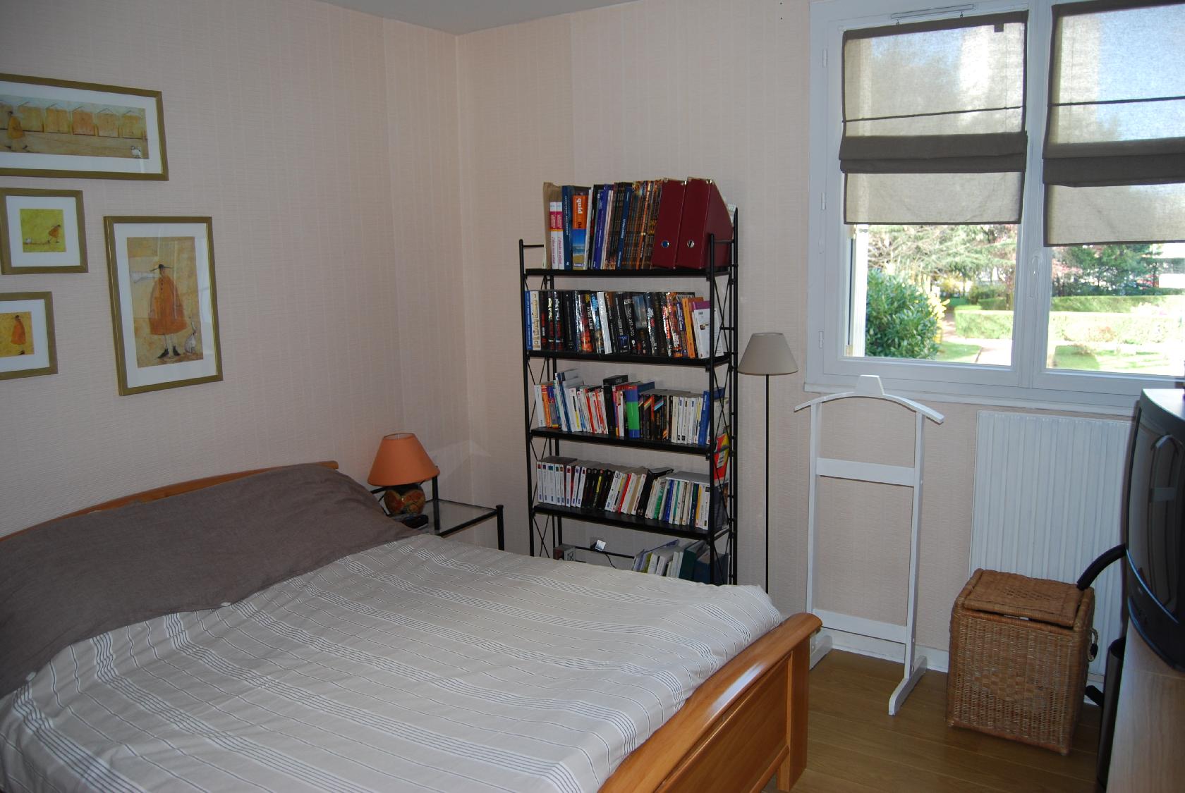 La chambre des parents fait environ 13m² et donne sur le jardin de la résidence.