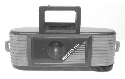 Appareil miniature de publicité « Blanche Porte » utilise des cassettes de 110. A l'emplacement du film, le déclencheur. Réarmement par molette vers l'objectif. Aucun réglage tout automatique