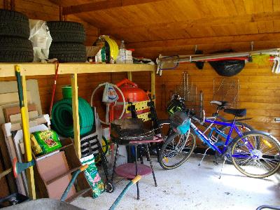 L' aménagement d' une grande étagère sur piliers peut se faire dans un garage haut au dessus de la porte du garage comme un étage. Ceci permettant d'utiliser l'espace hauteur.