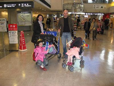 Jeudi 10 avril, 11h10 (heure locale), nous atterrissons à Narita (Japon). David est venu nous chercher. Emma ne s'est pas encore réveillée de sa nuit dans l'avion...