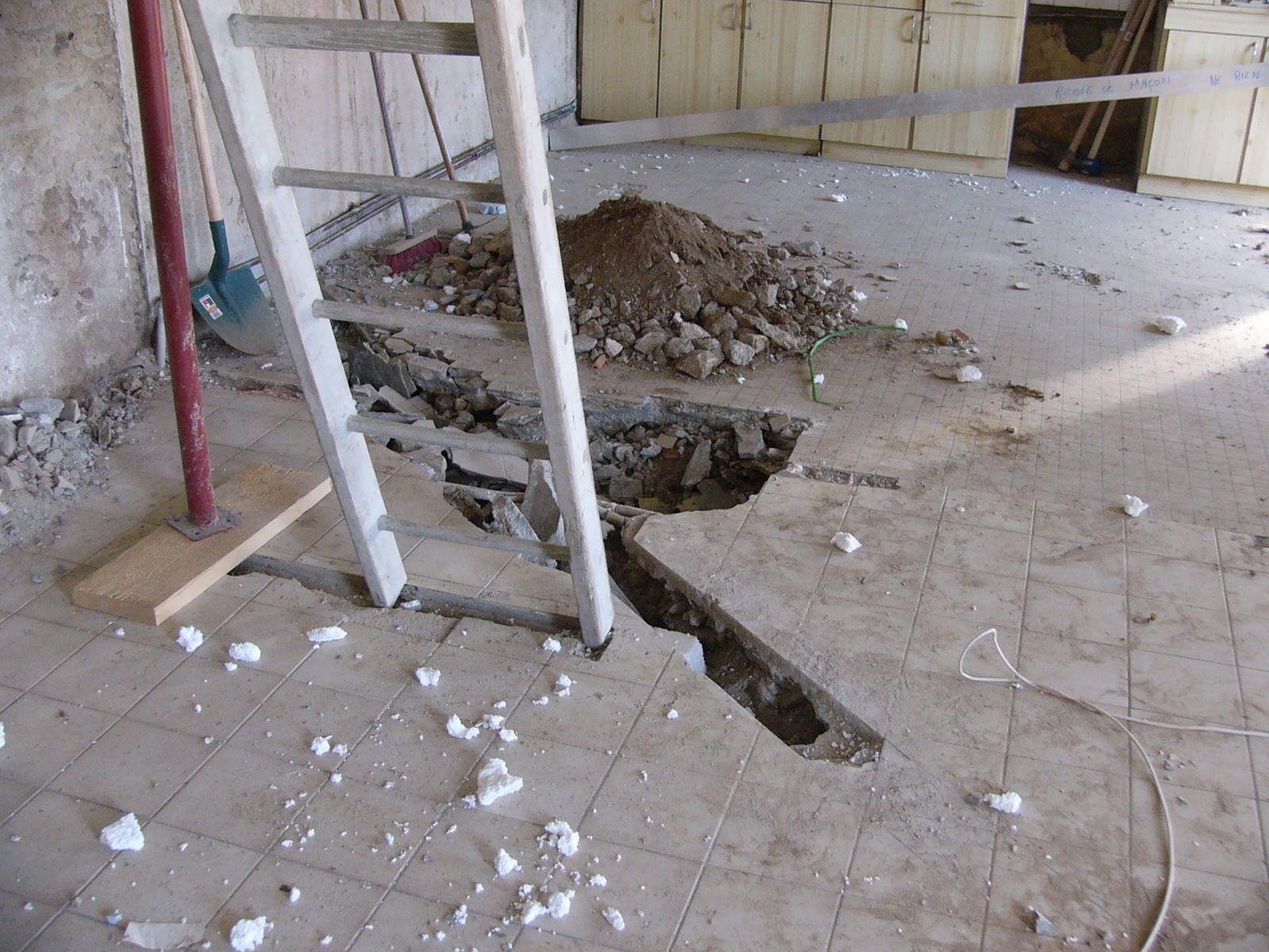 Cette tranchée aura fait parlé d'elle; entre ceux qui nous disait de tout casser et de refaire une dalle de sol neuve et ceux qui nous conseillait de pas trop toucher... le choix n'a pas été facile! Finalement après avoir pris conseil auprès de professionnels nous avons choisit de garder la dalle d'origine... Et c'était, on croise les doigts, la meilleure solution!