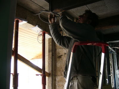 Nous voulions absolument garder un peu du charme de la maison que nous avions acheté initialement; C'est pourquoi nous avons décidé d'enlever les poutres apparentes du bas lors de la destruction des étages pour pouvoir les remettre en décoration fixé sur le nouveau plafond. Cela n'a pas été chose facile....