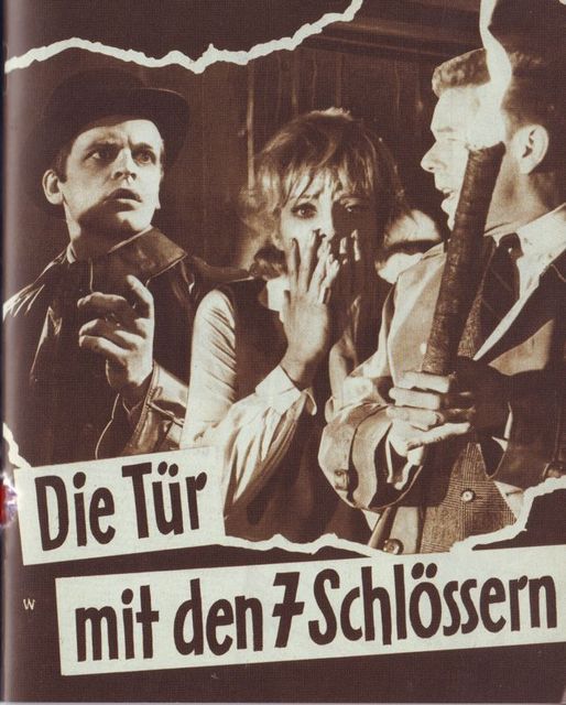 Le flic de service est cette fois incarné par le sympathique Heinz Drache, dont le style rappelle un peu celui de Joachim Fuchsberger, l’acteur jouant en toute décontraction. Mais Drache, lui, ne mâche pas de chewing-gum. Il a comme passe-temps la prestidigitation, un talent qui s’avèrera évidemment utile à un moment du film. Cet acteur avait déjà joué dans « The Avenger » (1960), et on le verra par la suite dans d’autres krimis (neuf en tout), mais aussi dans « Casse-tête chinois pour le judoka », de Maurice Labro. L’héroïne de « La porte aux sept serrures », Sabine Sesselmann, est loin d’être aussi connue qu’Uschi Glas ou Karin Dor. Cette jolie blonde avait néanmoins tourné l’année précédente dans « Le Narcisse Jaune intrigue Scotland Yard ». Mais son rôle le plus connu reste celui d’Aurore de Nevers dans « Le Bossu » d’André Hunebelle, aux côtés de Bourvil et Jean Marais.