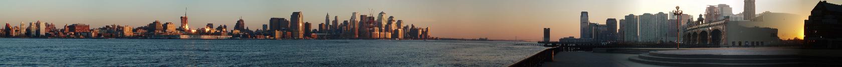 J'ai mangé dans ce 'marché' un kebab local... rien à voir avec ceux en France que je trouve bien meilleurs. En sortant sur la 42ème rue, j'ai continué à errer jusqu'à Broadway pour rejoindre Times Square et ses lumières. Des panneaux publicitaires sur écran géant partout dans la rue. Direction maintenant le Macy's (les galeries lafayettes américaines). J'ai besoin de m'acheter des jeans et je sais que les levi's y sont bien moins chers qu'en France. Après 4h dans NY où je reprends doucement mes repères je repars pour Hoboken ; et en profite pour faire une photo 'panorama' de Manhattan. Je vous laisse voir ce que donne mon montage après quelques retouches !