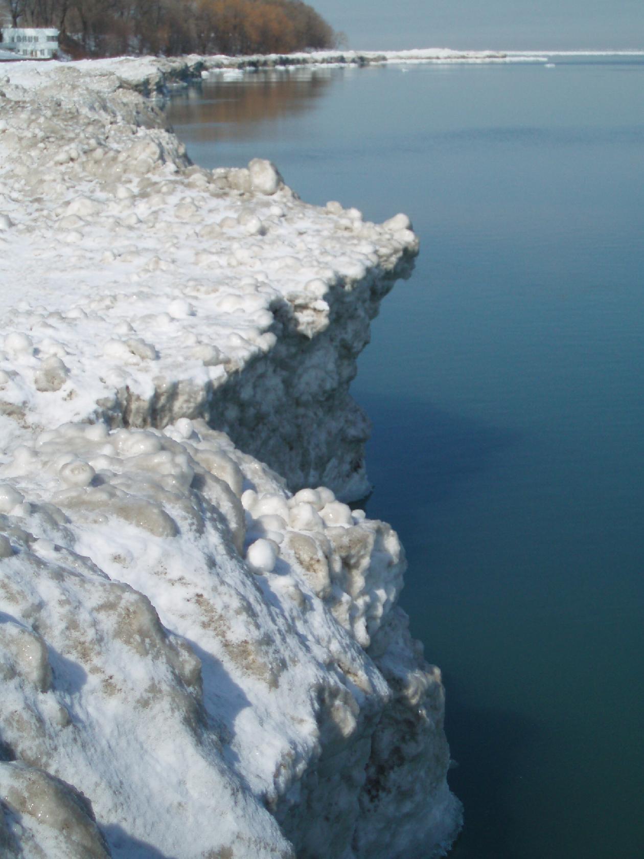 Direction St Catherine, qui longe un canal faisant la jonction entre le lac Herié et le lac Ontario. Ce canal est en réalité établit pour que les bateaux puissent contourner les chutes. Il y a donc de nombreuses écluses impressionnantes pour rattraper les 100m de dénivelé entre les deux lacs. Nous roulons jusqu'à Niagara on the Lake, un village très mignon, qui comme son nom l'indique se situe sur le lac, au niveau de la jonction avec la rivière Niagara. C'est impressionnant car les bords du lacs sont gelés, voire glacés et nous marchons dessus comme sur de la banquise. Au loin nous pouvons voir les blocs de glace qui dérivent sur le lac.
