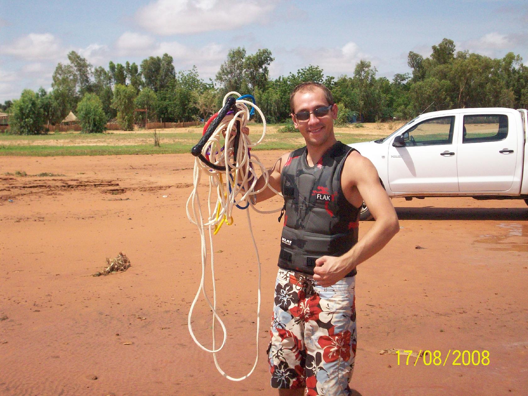 Il y a une sorte de plage à Niamey, appelée "La Pilule" (me demandez pas pourquoi)...certains expats possèdent ces fabuleux engins que sont les jets-ski. Faut bien trouver à s'occuper le dimanche...Bref, après moults efforts, j'ai réussi à sortir de l'eau, quelques instants j'ai dû ressembler au mec dans "Les Bronzés", mais très brièvement...je vous passe le nombre incalculable de tôles prises et de tasses bues...