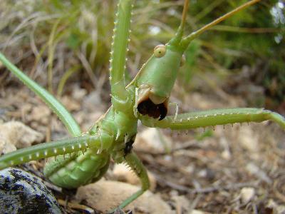 Cet après midi en me promenant dans mes collines, je suis tombé sur une Magicienne Dentelée ou SAGA PEDO. Cette espèce protégée, fait partie de la famille des sauterelles et elle est au sommet de la chaine alimentaire des invertébrés de de la Garrigue. Vous vous doutez bien qu'elle n'est pas végétarienne Ici en Provence son nom est la "Langouste des Collines" Sa taille peu atteindre 17 cm , de la pointe des antennes à sont Oviscapte Si vous cliquez sur le lien SAGA PEDO, vous en saurez plus sur cette machine à tuer qui est assez stupéfiante se reproduit par Parthénogénèse indéfinie, chose remarquable