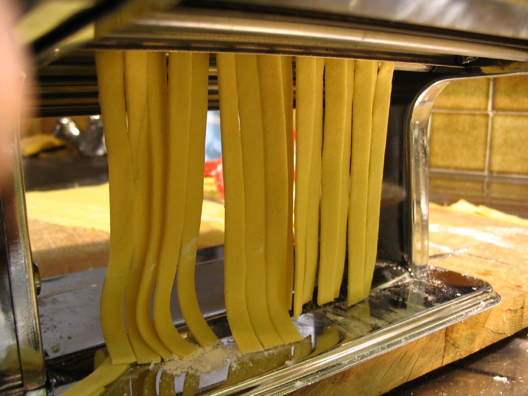 ensuite introduire les abaisses dans le rouleau à tagliatelli, si à la sortie les lanières ne se séparent pas toute seule c'est que la pâte était trop humide encore