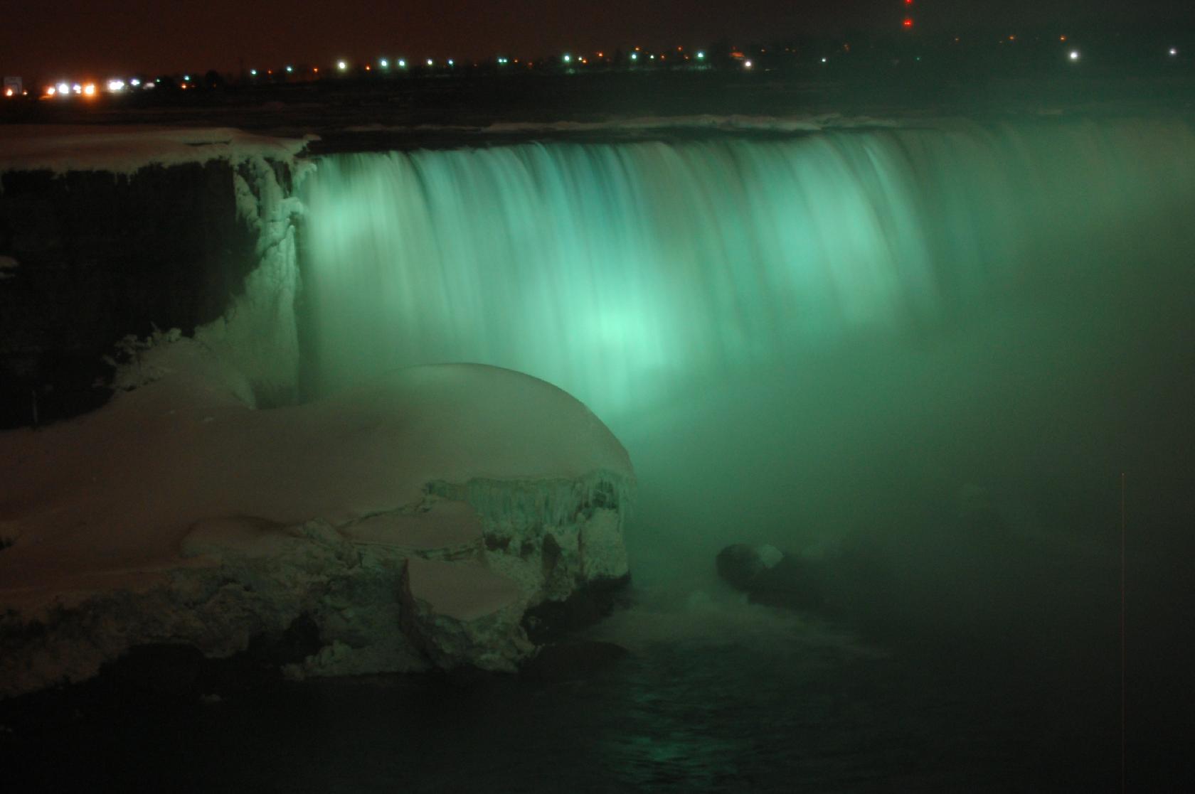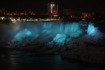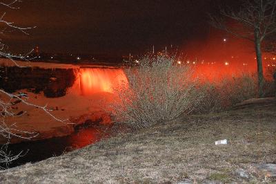 Après ces quelques boires et déboires, nous retournons à Niagara Falls où nous avons l'intention d'attendre la nuit afin d'admirer les chutes éclairées: paysage haut en couleur