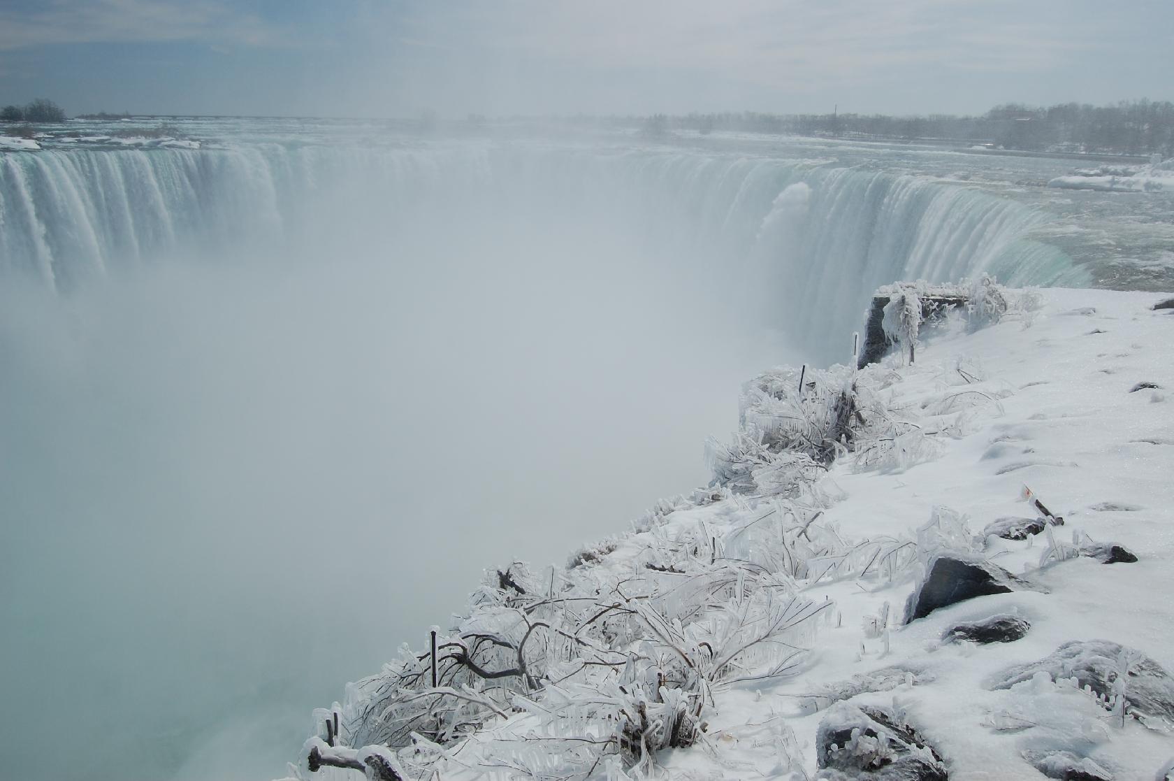 Nous partons de bonne heure avec deux magnifiques voitures de location, et nous poursuivons les axes rectilignes de Toronto en direction des chutes. Nous commençons la matinée par admirer ces quantités d'eau qui se déversent devant nous…les embruns glacés viennent nous caresser le visage et nous rappeler que l'hiver est toujours présent !