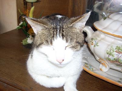 voilà un de mes chéwis: Minou!! Je n'ais pas pu choisir son nom car je l'ai sauvé de l'SPA car il griffai la fille de l'ancienne propriétaire mais il est vraiment câlin!!