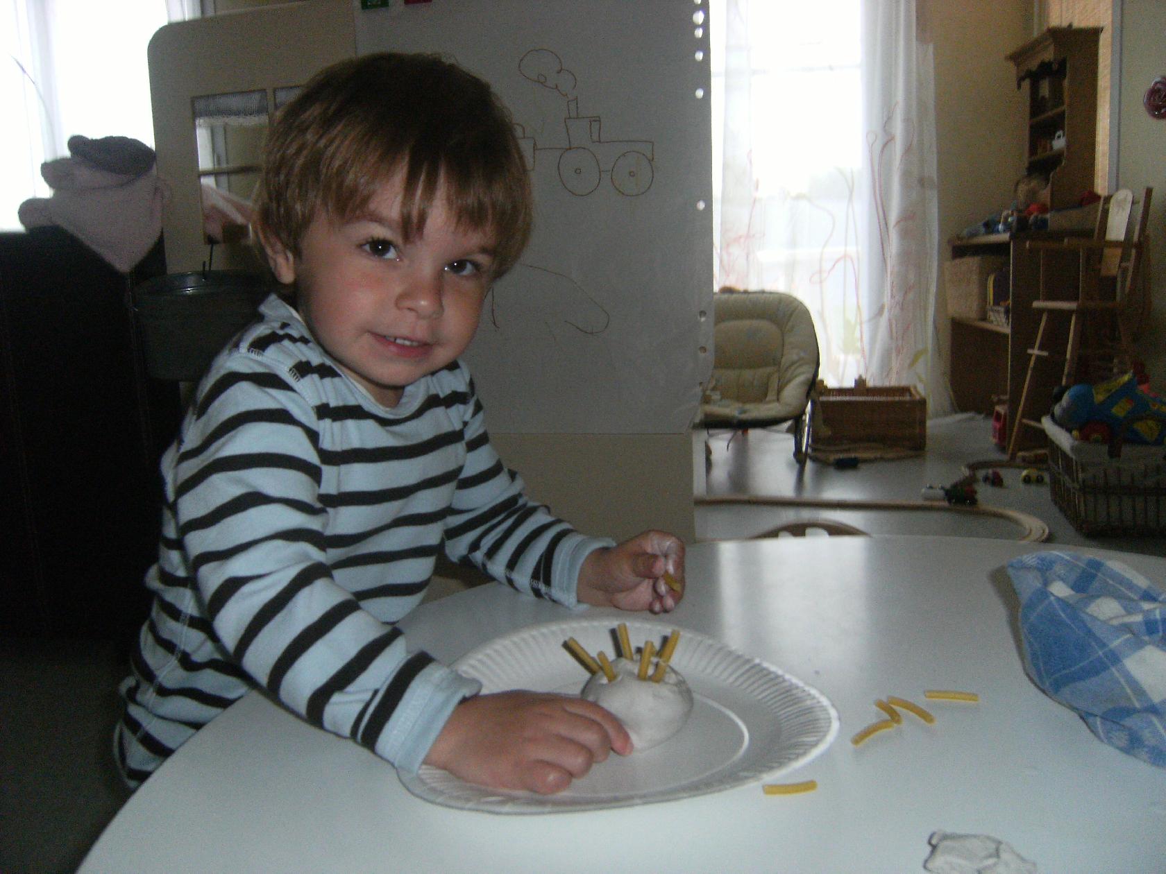 Il faut juste modeler une tête et un nez, et voilà!!(attention, le notre s'est décollé en sechant)