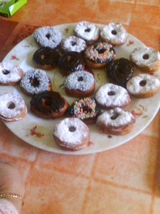 ensuite faite chauffer de l'huile, et plonger les donuts dedans, il faut qu'ils soient d'orés, tournés-les et faite cuire de l'autre coté.