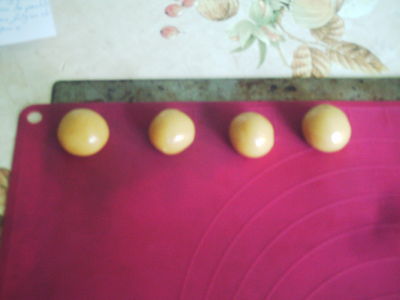 Prélever des petits morceaux de pâte et façonner 60 petites boules entre les paumes des mains (2-3 cm de diamètre environ ) .