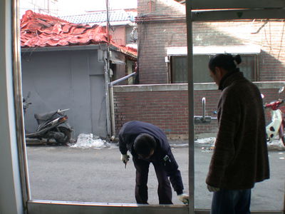 On a eu de la chance parce que la vitrine a ete cassee juste le dernier jour d expo du coup les gens on pense qu on faisait des petits travaux
