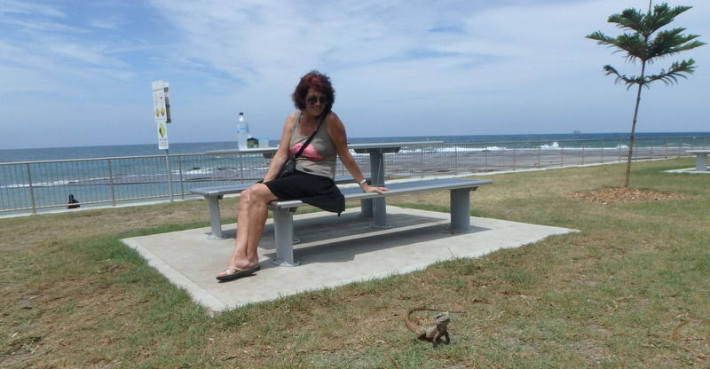 Notre table pour le pic nic est réservée, mais quelques gros lézards ( une sorte de Pogona) ne sont pas trop d'accord.