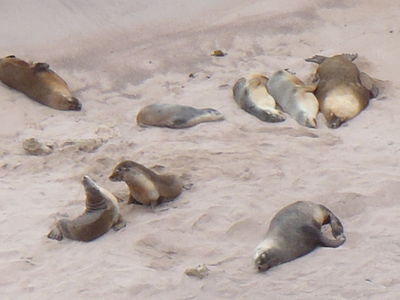 D’interminables lignes droites, 400 kms, nous emmènent de Port Augusta, ville sans grand intérêt, à Streaky Bay….où nous espérons voir les « sea lions »