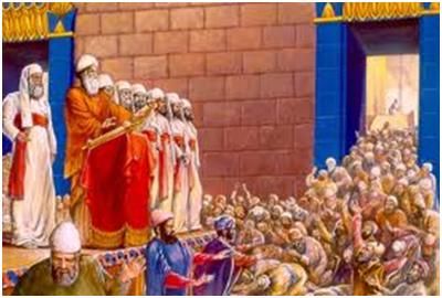 Les lévites l’expliquent et la traduisent pour ceux qui ne comprenaient pas l’hébreu, et le peuple renouvelle ses engagements envers Dieu. Après avoir appliqué diverses mesures de caractère essentiellement politique, Néhémie préside la dédicace de la muraille réparée, puis procède à un certain nombre de réformes d’ordre religieux.