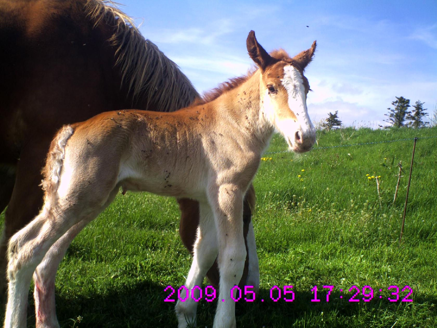 Ce matin je suis aller donner de l'herbe a mes deux jument, Rose ne présenté aucun signes qui arait pu m'indiquer l'arrivée cet apém midi de son poulain.