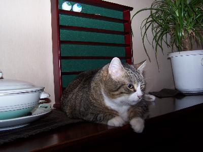 Melle pussycat est en train de garder mes 2 (malheureuses) balles logotées à toute tentative de vol :un petit regard sur la gauche....