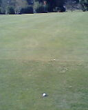 je me suis bien remis (je suis en limite de green, on distingue la différence de couleur d´herbe), le drapeau est à environ 30 métres.