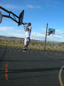Passant devant un terrain de basket tous frais obligé d'aller tapoté le ballon et fair quelque dunk!!