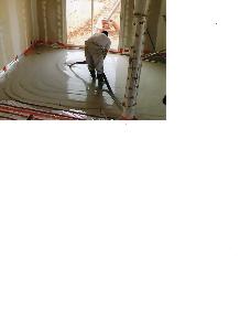 Avec l'aide de Jean-Philippe, notre ami plombier, nous avons installé la pompe à chaleur (chauffage aérothermique) et prévu toutes les arrivées sanitaires au sol. Après avoir fixé au sol 3 couches différentes de plaques isolantes, nous avons fixé les circuits du chauffage dans toute la partie Rez-de-Chaussée.