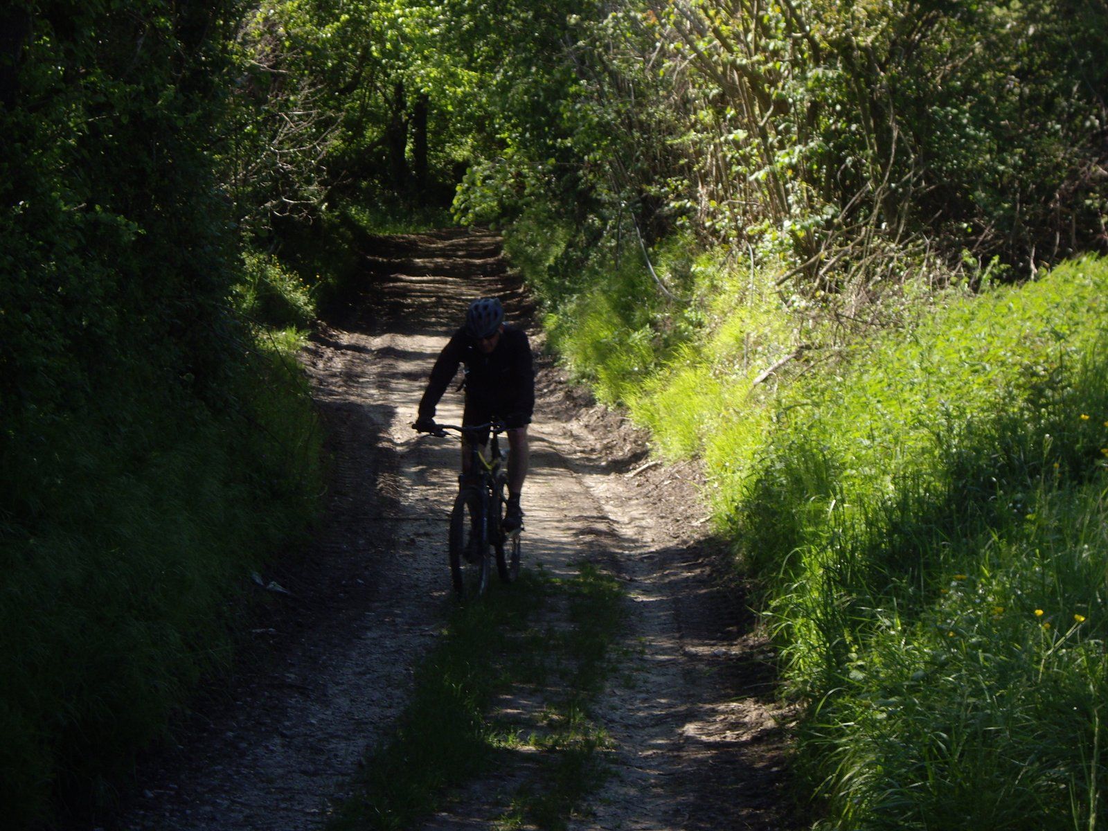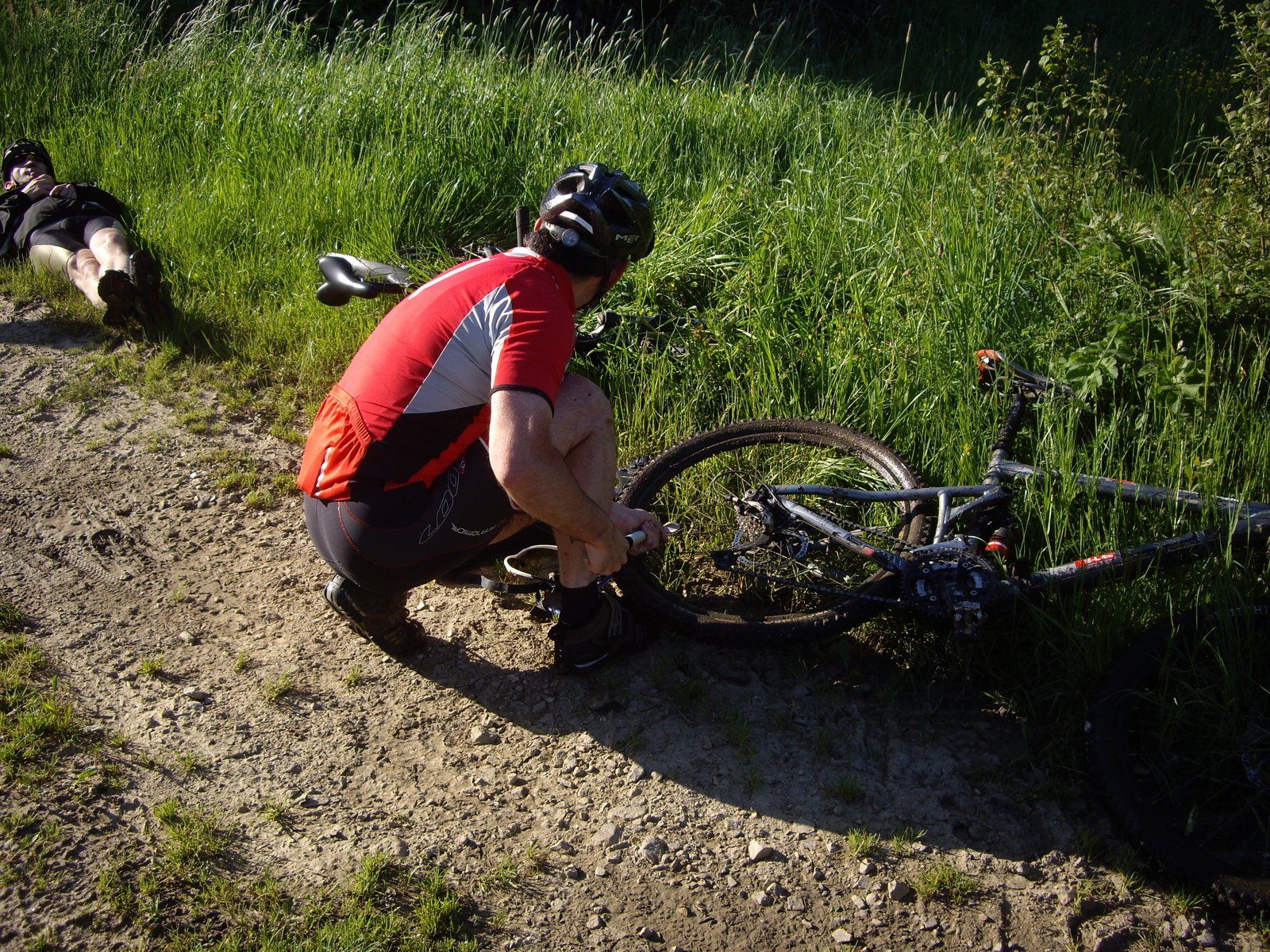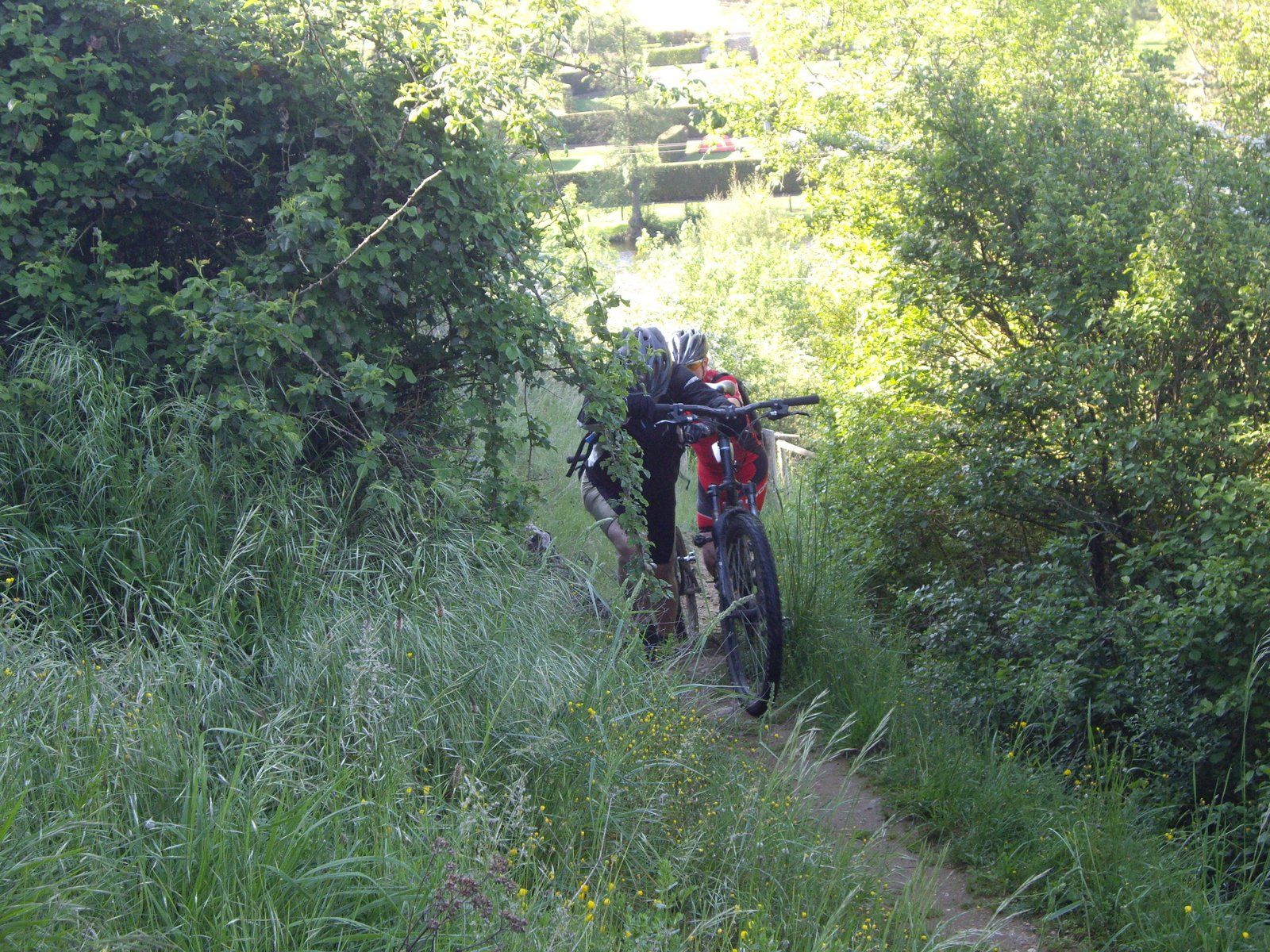 On embraye pour 35 kms tranquille, quand dans la première montée, Hugo casse net son dérailleur!!!! (etonnant me direz vous pour un vtt sans entretien...)