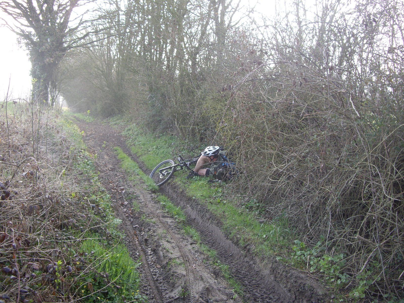 Quand il vous disait qu'il n'était pas à l'aise! De plus je signale que cette photo prise ce matin le fut dans les environs de Mézières! Finalement il avait raison. Bon à sa décharge sur ce chemin pour le moins très humide