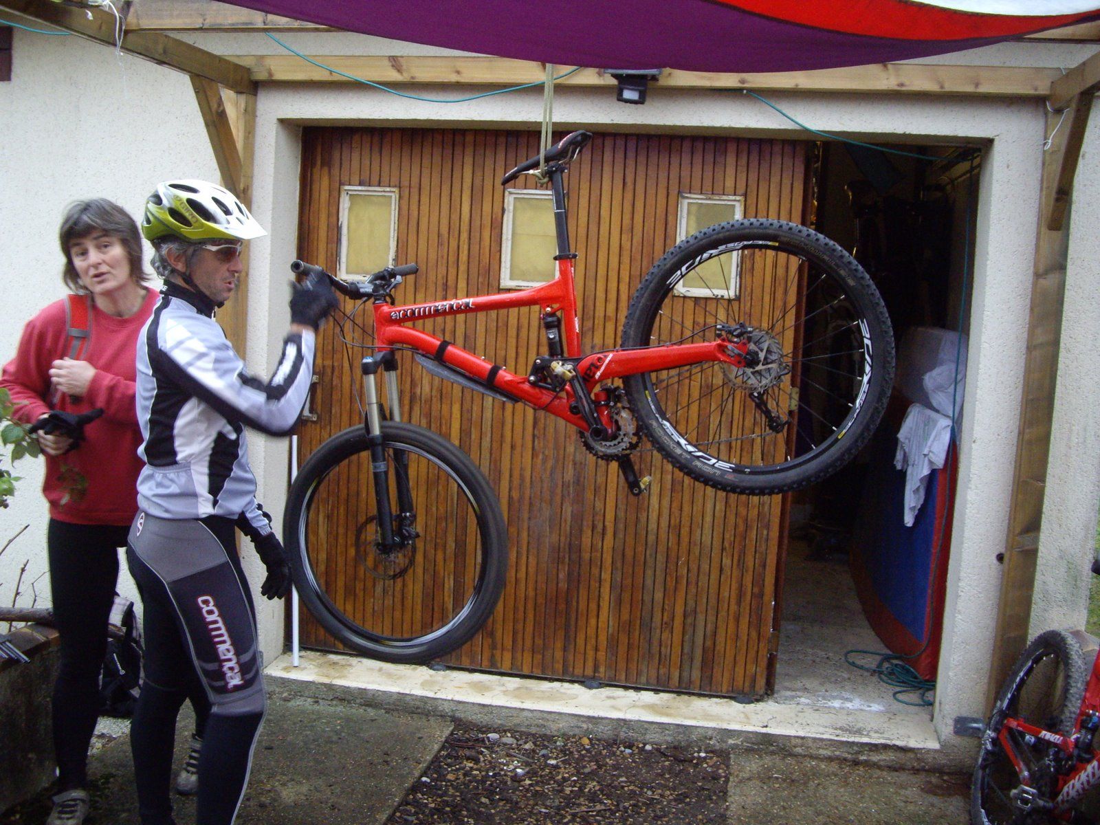 Et...Hugo qui ne sort que par grand froid, avec un vtt...en piteux état (frein arrière bloqué et gaine de vitesse explosée). Peut-être une certaine négligence sur l'entretien de son spad...