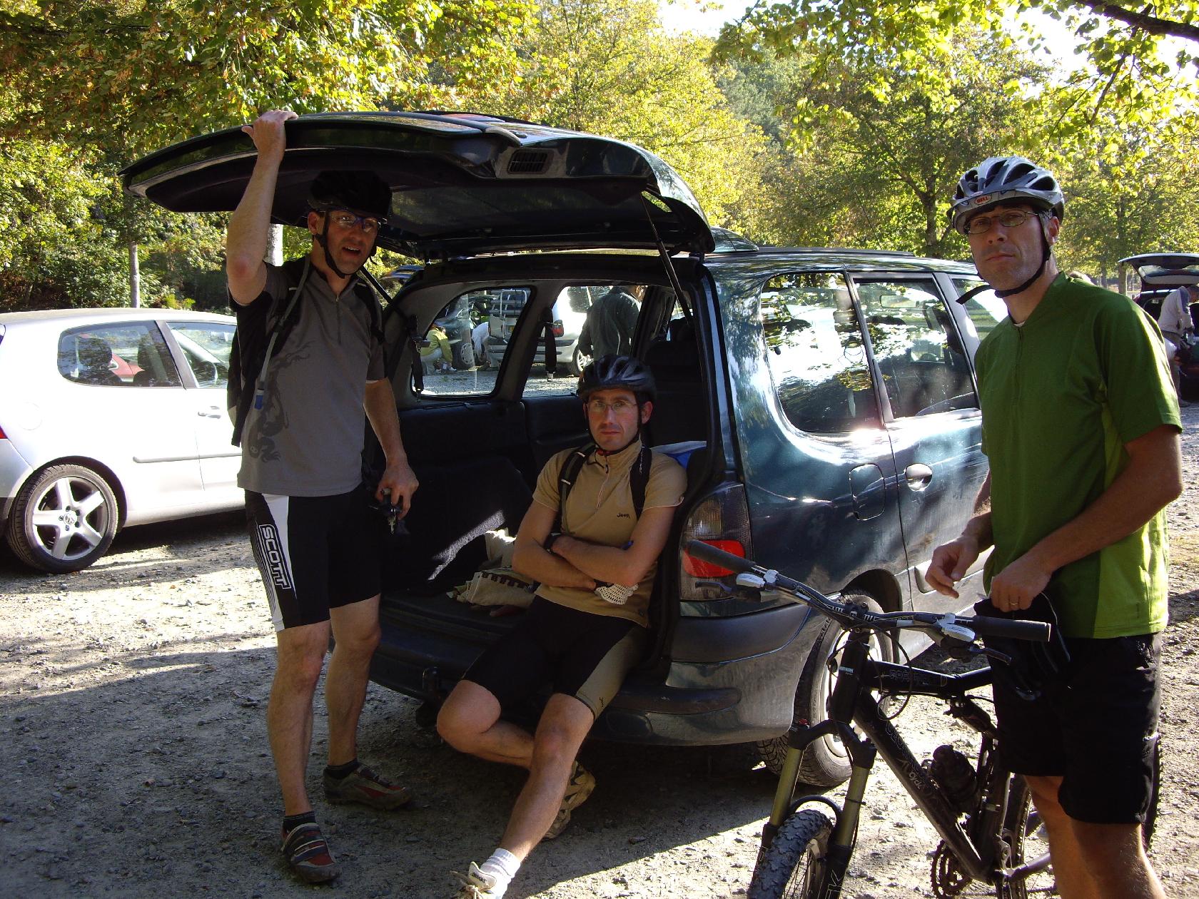 Donc au programme, départ 8 heure de Beaumont pour pas que le Nafnaf y se fasse tuer en rentrant tard!!! Déja on arrive à 8 h et son vtt n'était même pas dans la voiture. Faut dire qu'au vdd on a des problèmes avec les horaires! Bref au lieu de partir sur la rouge à 8h30, on a commencé qu'à 8h45!